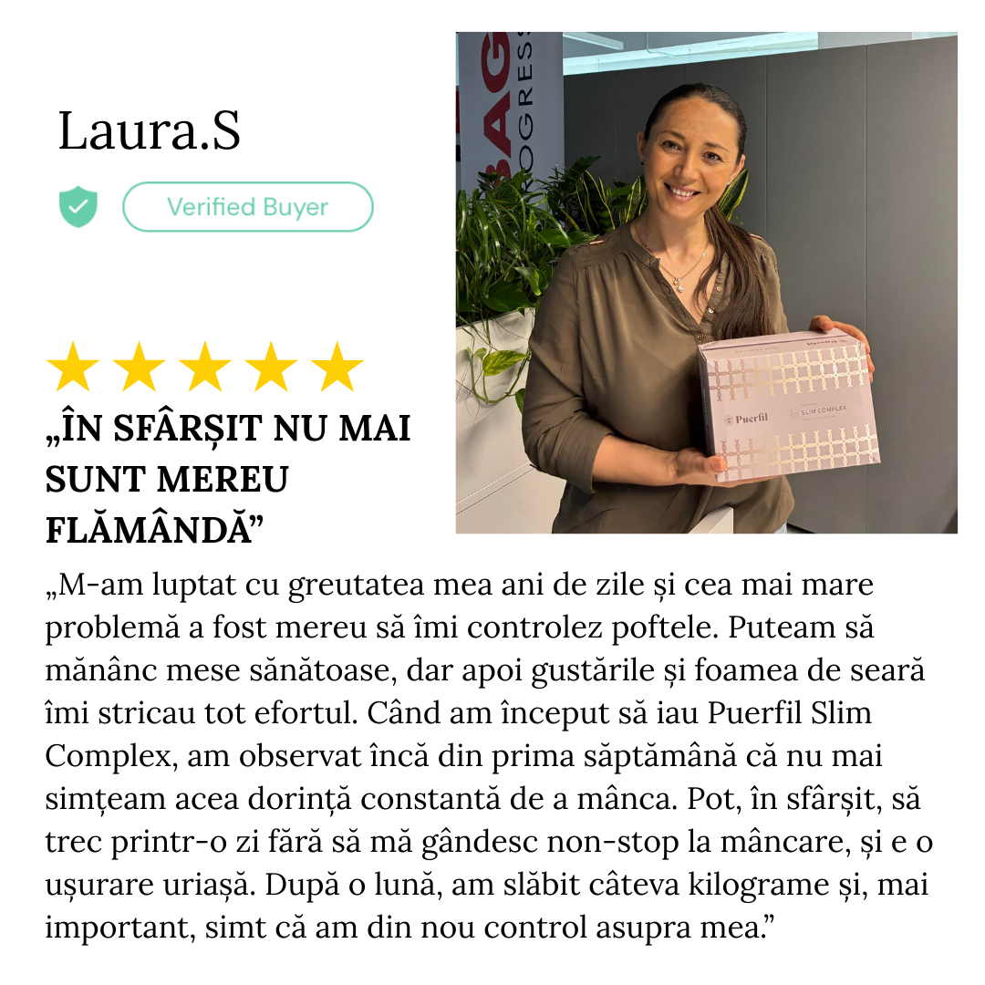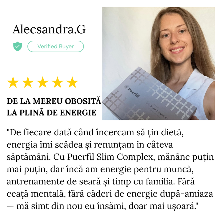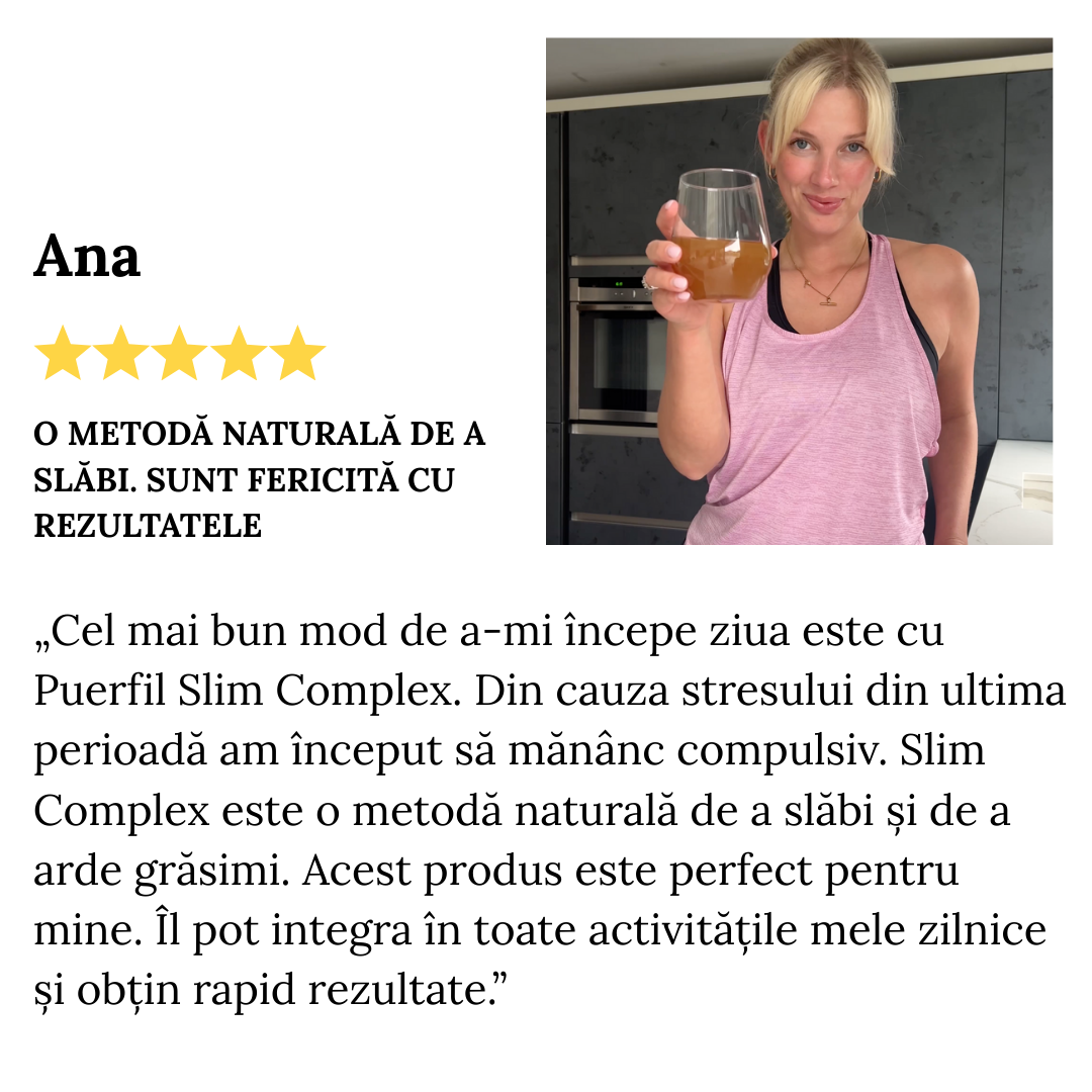 Folosește Puerfil Slim Complex pentru a-ți alinia apetitul, metabolismul și forma corpului în armonie perfectă și arată lumii din nou adevăratul TINE.