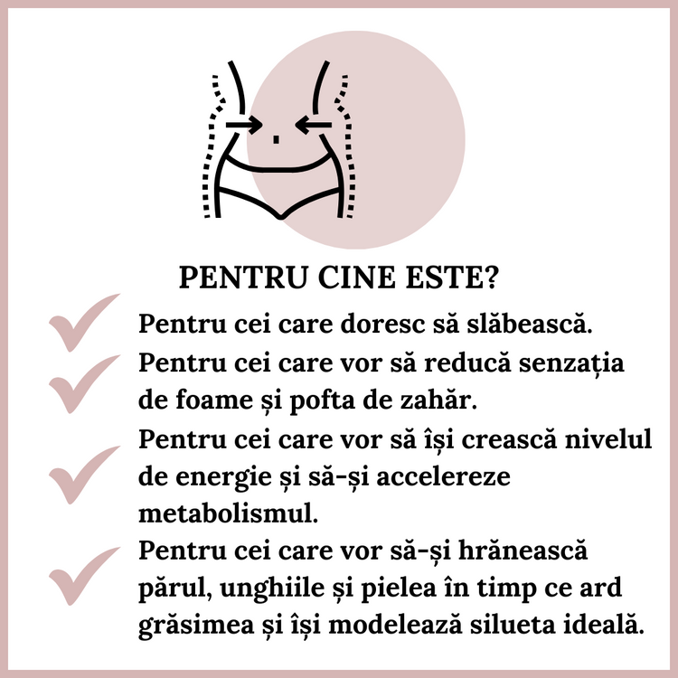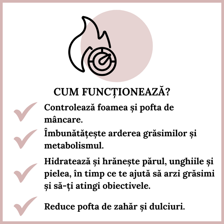 Ajută la menținerea sănătății și aspectului părului, unghiilor și pielii în timpul procesului de slăbire.